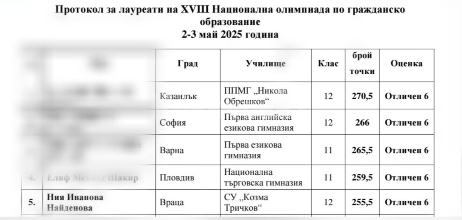Враца има свой лауреат от Националната олимпиада по гражданско образование и то в четвърта възрастова група - 12 клас.