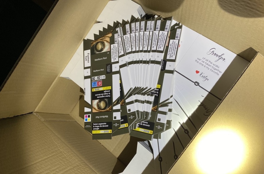 Около 19:30 часа на 06.10.2025 г. на път Е79 в посока Дунав мост 2 - Нова Европа е спрян пътен състав влекач и ремарке с български шофьор, който пътува от Гърция към Нидерландия. Митническите служители пристъпват към физическа проверка на товарното помещение, в което откриват 6 палета с кашони, които са отворени на избирателен принцип. В тях митническите инспектори намират изрязани заготовки за кутии за цигари с логото на популярна марка. В помещението е установено и още 1 фолирано пале с ролки коркофан с логото на друга известна марка цигари. Водачът и пътния състав са съпроводени до митническо бюро Видин, където са преброени 315 кашона с общо 1 014 300 изрязани заготовки за кутии за цигари и 80 бобини с 600 кг коркофан на защитена търговска марка. За стоките са възникнали основателни съмнения, че се превозват в нарушение на права върху интелектуалната собственост, поради което са иззети. Действията по проверката продължават.