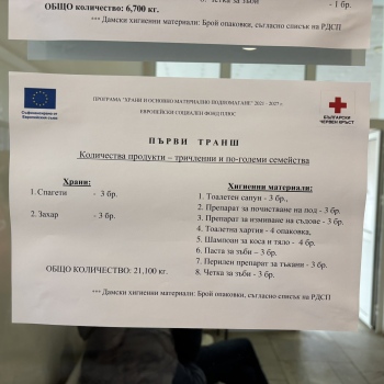 От днес започва раздаването на пакети с хигиенни материали и хранителни продукти на хора в нужда по програмата за материално подпомагане на "Европейския социален фонд Плюс".