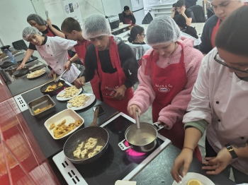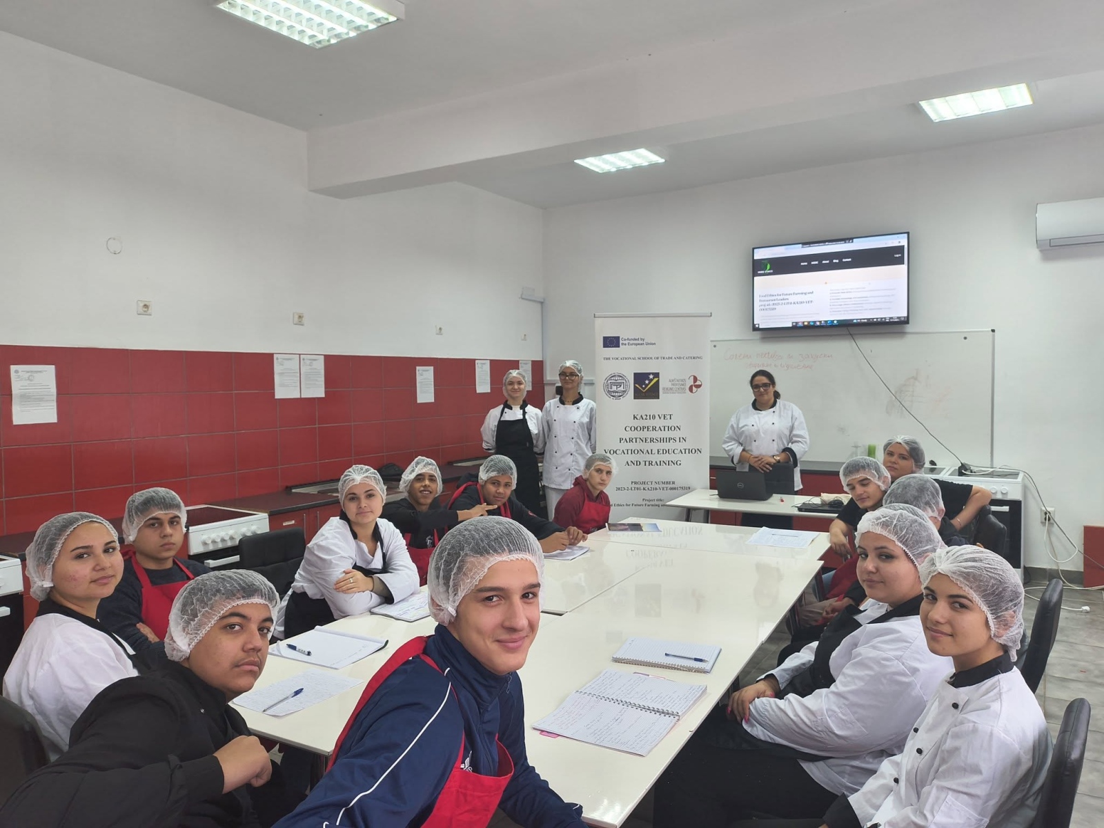 По време на специален час по УП „Кулинарни техники и технологии в кетъринга“ с преподавател инж. Цветелина Ангелова, участниците в мобилността представиха пред учениците от 9. б и 11. б класове - специалност „Кетъринг“ за наученото в Литва. Те демонстрираха приготвянето на двете традиционни рецепти, споделиха интересни факти за литовската кухня и обсъдиха значението на етичния подход към храната – от произхода на продуктите до тяхното сервиране.