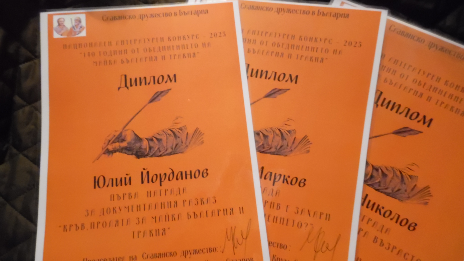 Първите награди за творческия сезон 2025-2026 година кацнаха на раменете на дейците на литературния клуб „Кръстьо Пишурка“ при народното читалище „Постоянство 1856“ в Лом. В обявения от Славянското дружество в България национален литературен конкурс на тема „140 години от обединението на майка България и Тракия“ за написване на стихотворение, разказ, очерк, есе и документални материали, свързани с личности, чието дело е принос в историята на България, в контекста на темата, ломчани завоюваха три награди. След изнесения лирично-музикален спектакъл „Слова и трели за доброта зажаднели“ това е добър старт в 93-я сезон на най-старото сдружение на пишещи в провинцията на България.