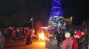 Кметът на община Ружинци, Александър Александров запали светлините на коледната елха на площада в село Дреновец.