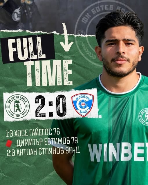 Ботев (Враца) победи с 2:0 като домакин Спартак (Варна) в двубой от 18-ия кръг на efbet Лига. Двата тима не изиграха най-интересния мач, но домакините заслужено стигнаха до успеха, след като бяха по-активният отбор. Почти през цялото време Ботев и Спартак играха при ограничена видимост заради гъстата мъгла, която беше налегнала над стадион “Христо Ботев”. Интересните моменти в срещата пък дойдоха след 75-ата минута, когато Хосе Гайегос успя да открие резултата (76’). 120 секунди по-късно пък Димитър Евтимов беше изгонен с директен червен картон след грубо нарушение.