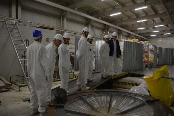 В първия ден от двудневното посещение зам.-изпълнителният директор с ресор управление на РАО Георги Разложки и ръководител сектор „Плазмено изгаряне“ Илиян Димитров запознаха специалистите в подробности с техническите специфики на инсталацията за третиране и кондициониране на радиоактивни отпадъци.