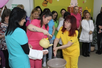 И тази година бе извършен символичния ритуал „измиване на ръцете на най-възрастната акушерката“.