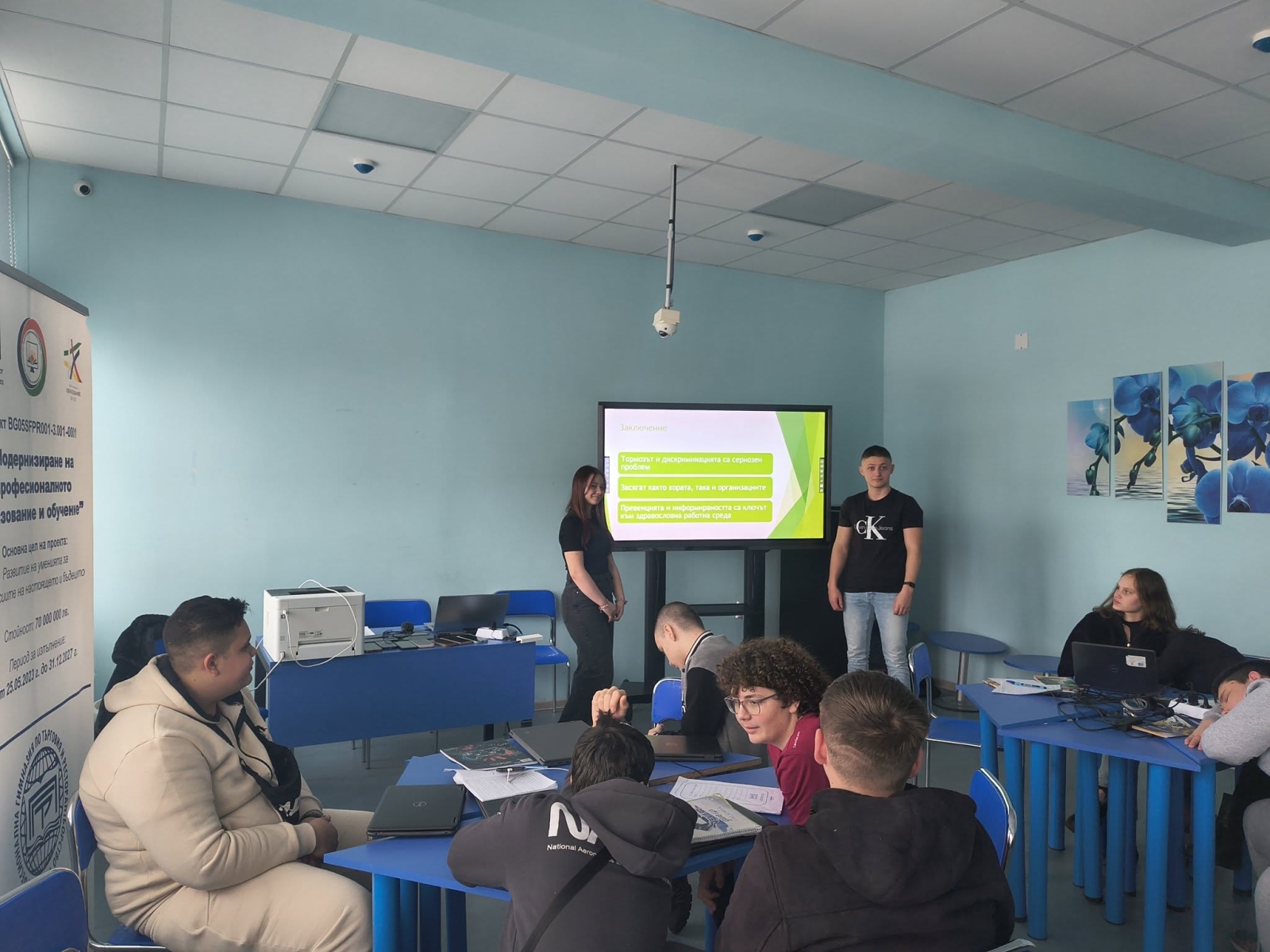 В края на занятието се проведе дискусия, по време на която учениците активно споделяха мнения и обсъждаха реални казуси. Разговорът допринесе за изграждането на по-висока социална чувствителност, правна култура и умения за адекватна реакция в бъдеща професионална среда.