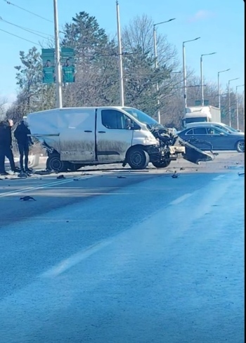 Лек автомобил, бус, джип и малък камион са се ударили на изхода на Враца към София край магазин „Технополис“. По непотвърдена от полицията информация има двама пострадали.