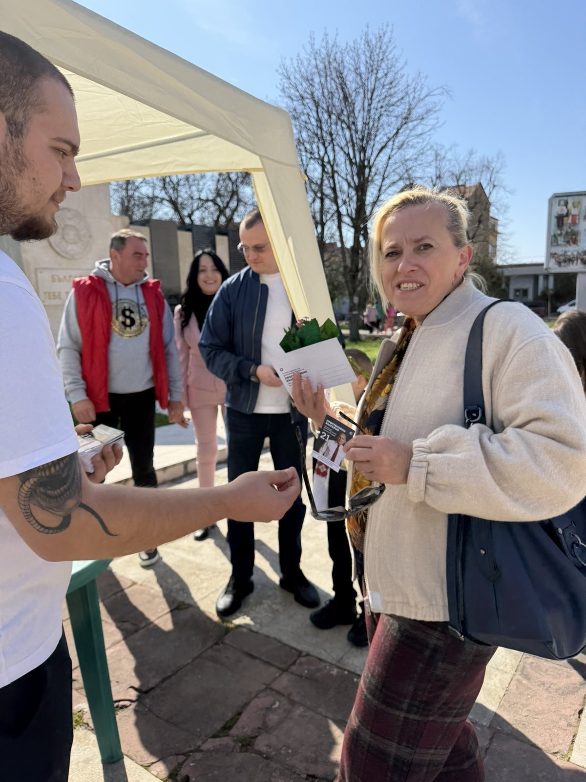 На светлия християнски празник Цветница кандидатите за народни представители от листата на Коалиция „Прогресивна България" за 6 МИР – Враца, Стела Илиева и Михаил Михайлов, излязоха на площада в Бяла Слатина, за да бъдат сред гражданите — с цветя в ръце и желание за разговор.