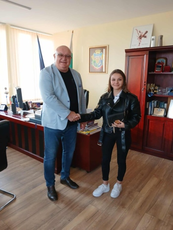 Кметът връчи на трите гимназистки подаръци и рекламни материали на общината. За участието си в инициативата „Мениджър за 1 ден“ 2025 на Junior Achievement България, Александра Красимирова, Камелия Борисова и Вероника Велизарова получиха сертификати.