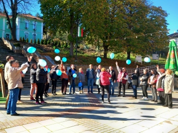 След това всички присъстващи заедно пуснаха във въздуха сини балони.
