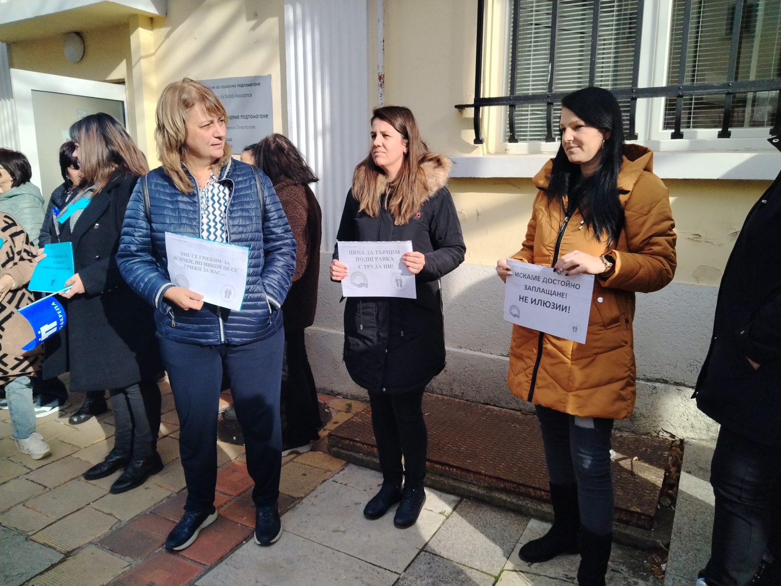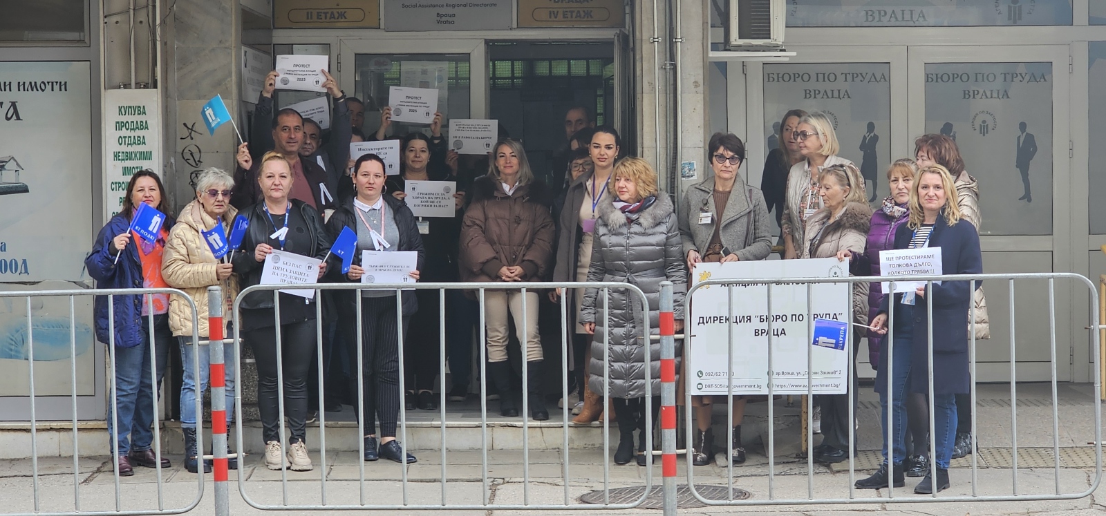 На протест срещу ниските заплати и отношението към административните служители излязоха работещите в Агенцията по заетостта, Инспекцията по труда и социалните службивъв Враца и Монтана. Заедно със служителите си в Монтана беше и директорът на трудовата инспекция Димитър Петров.