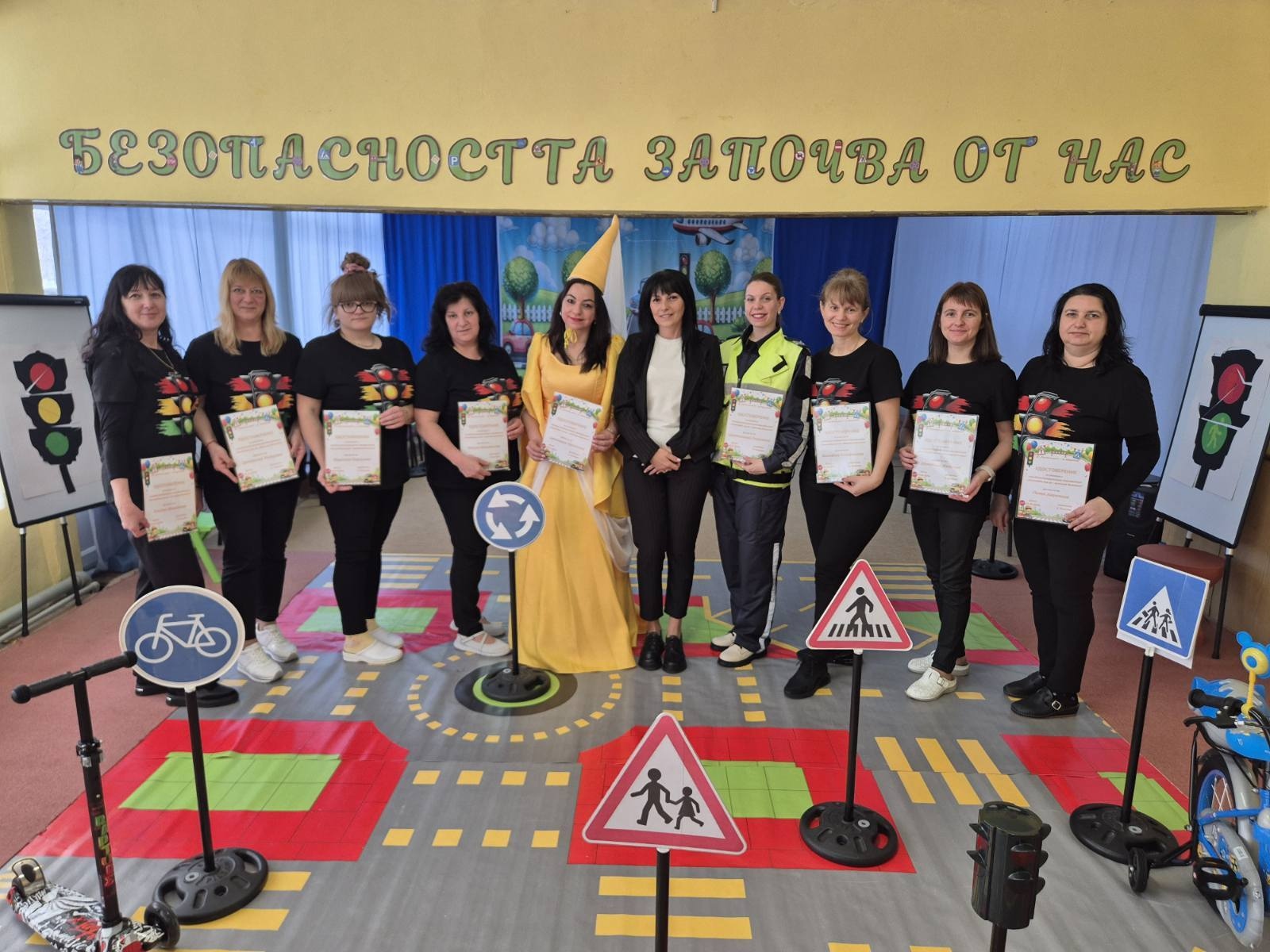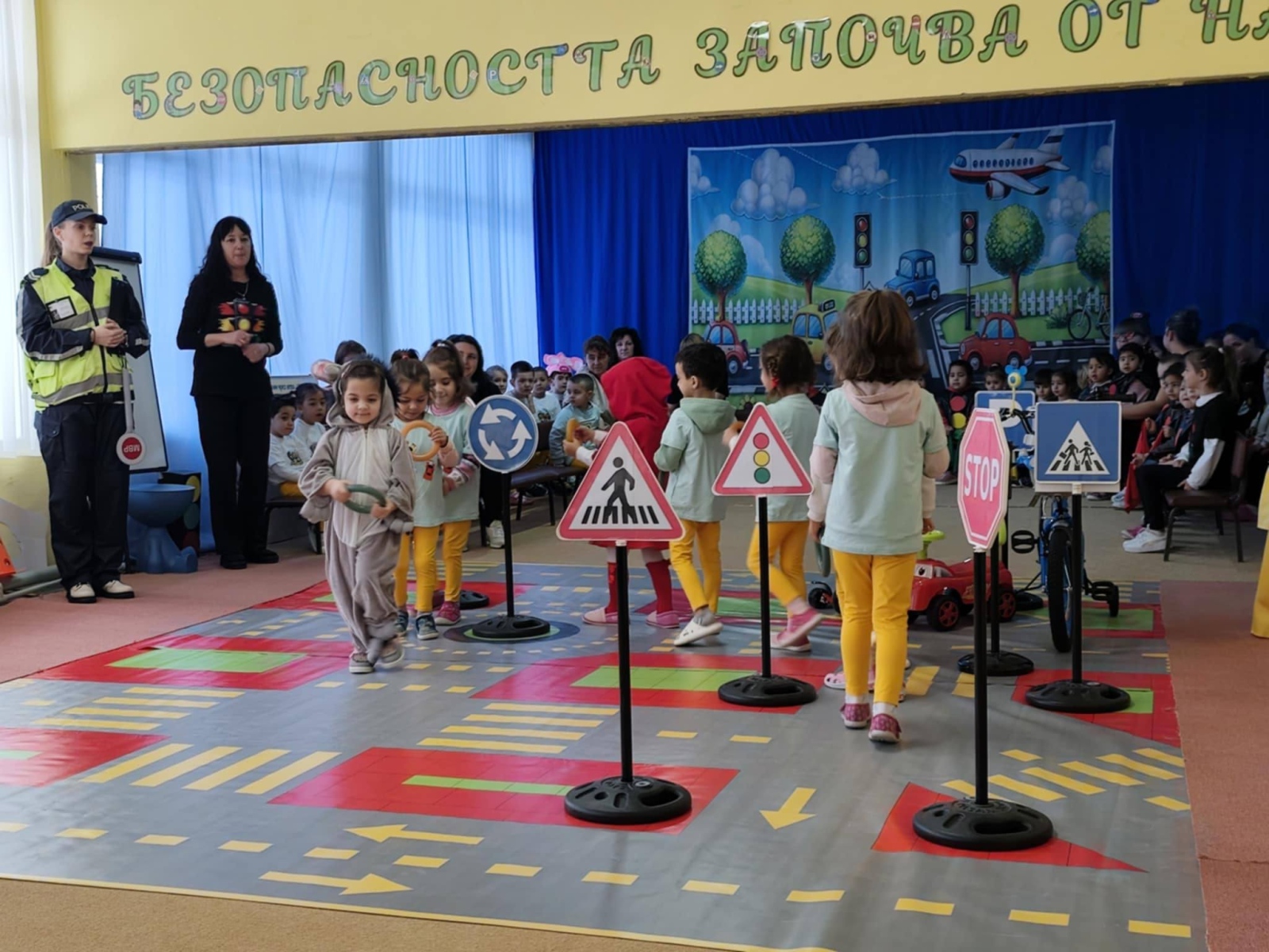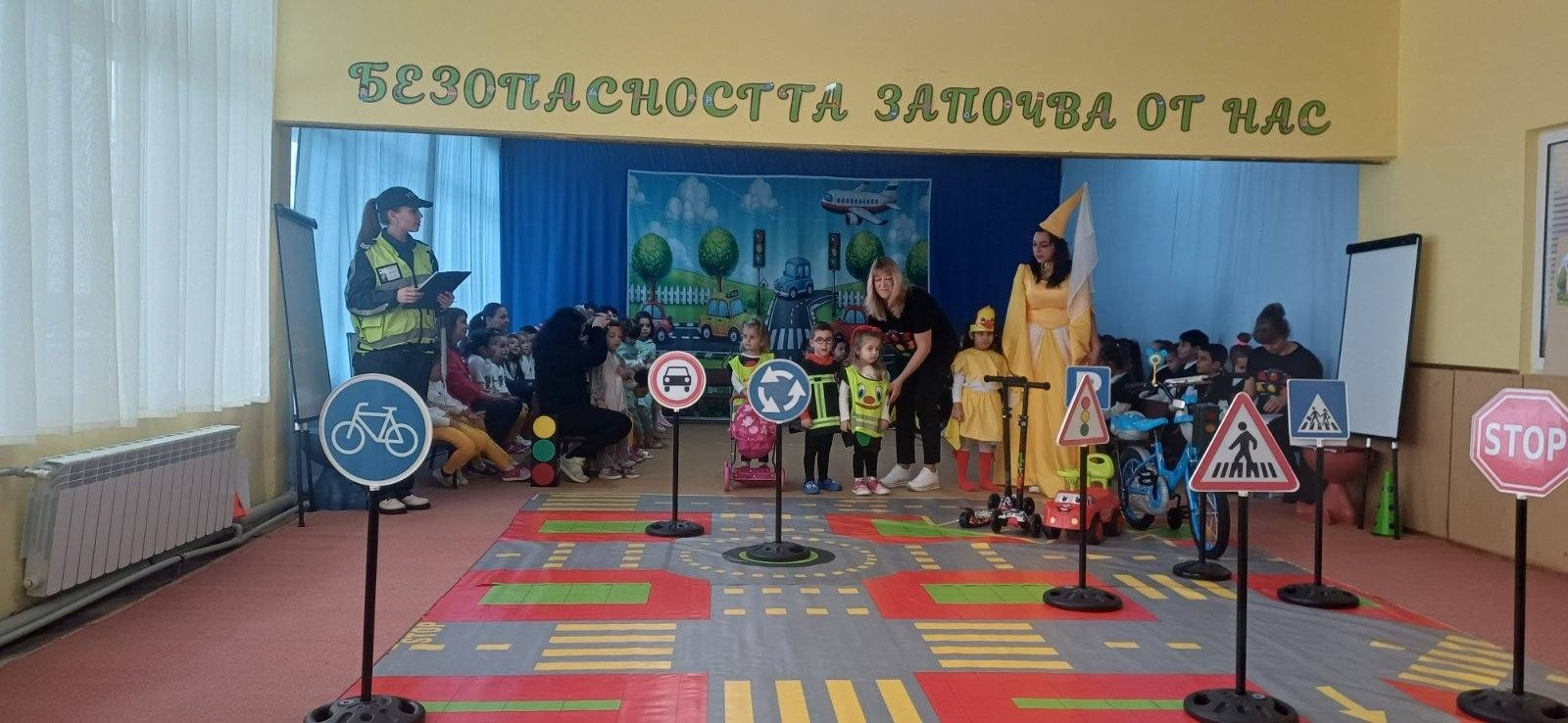 По време на откритата практика децата демонстрираха знания и умения за безопасно поведение като пешеходци чрез игрови и практически ситуации, съобразени с възрастовите им особености. Акцент бе поставен върху правилното пресичане, разпознаването на пътни знаци и сигналите на светофара, с ясното послание, че „Безопасността започва от нас“.