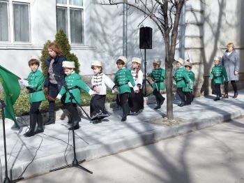 Облечени с униформи като четници, възпитаници на филиал „Васил Левски” към Детска градина „Детелина” представиха рецитал от песни и стихове, посветени на Апостола на българската свобода.