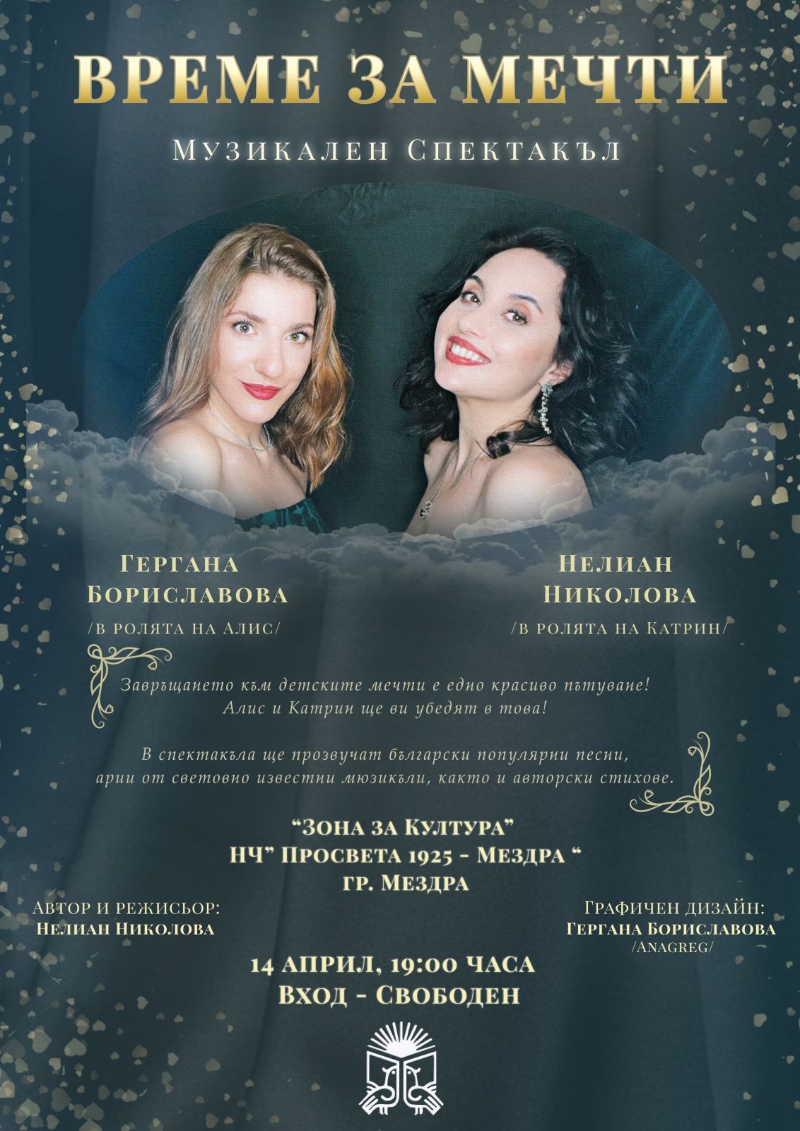 Кулминацията на вечерта беше музикалният спектакъл „Време за мечти“ - авторски проект на оперните певици Гергана Бориславова и Нелиан Николова. Спектакълът разказва вдъхновяващата история на две приятелки - Алис и Катрин, които в забързаното ежедневие губят връзка със своите мечти, но получават шанс да ги открият отново. Това е емоционално пътешествие, което задава важни въпроси: Кога спираме да мечтаем? Защо го правим? И как да намерим пътя обратно към себе си? На сцената оживяха обичани български песни, арии от световни мюзикъли, както и авторски стихове, съчетани в една силна история за смелостта да следваш мечтите си.