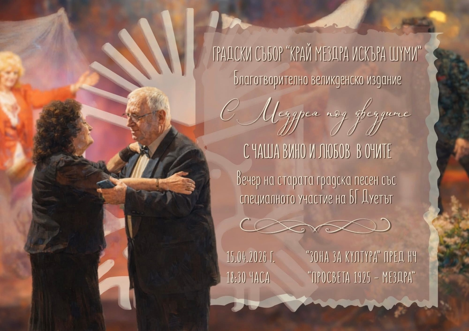15 и 16 април 2026 г. (сряда и четвъртък) - 18:30 часа - „Зона за култура“ пред НЧ „Просвета 1925 - Мездра“