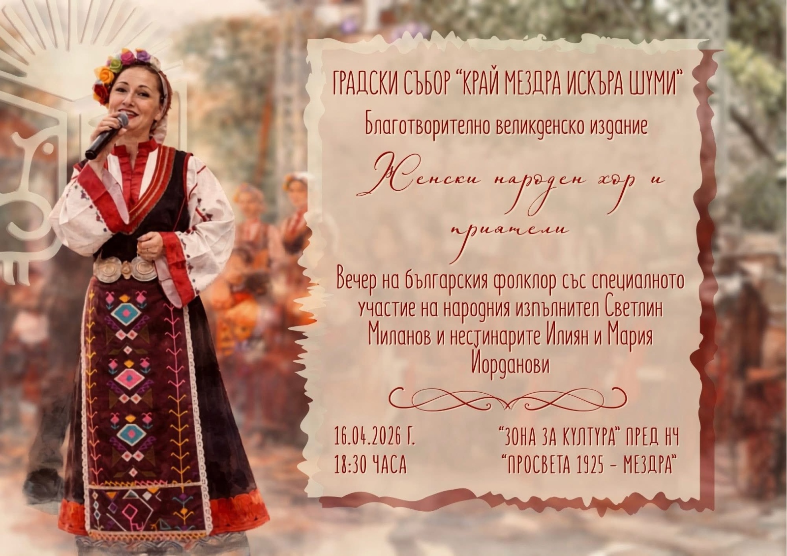 В разгара на Светлата седмица в продължение на три вечери Мездра е домакин на едно вдъхновяващо културно събитие с кауза: Великденско издание на Градски събор „Край Мездра Искъра шуми“.