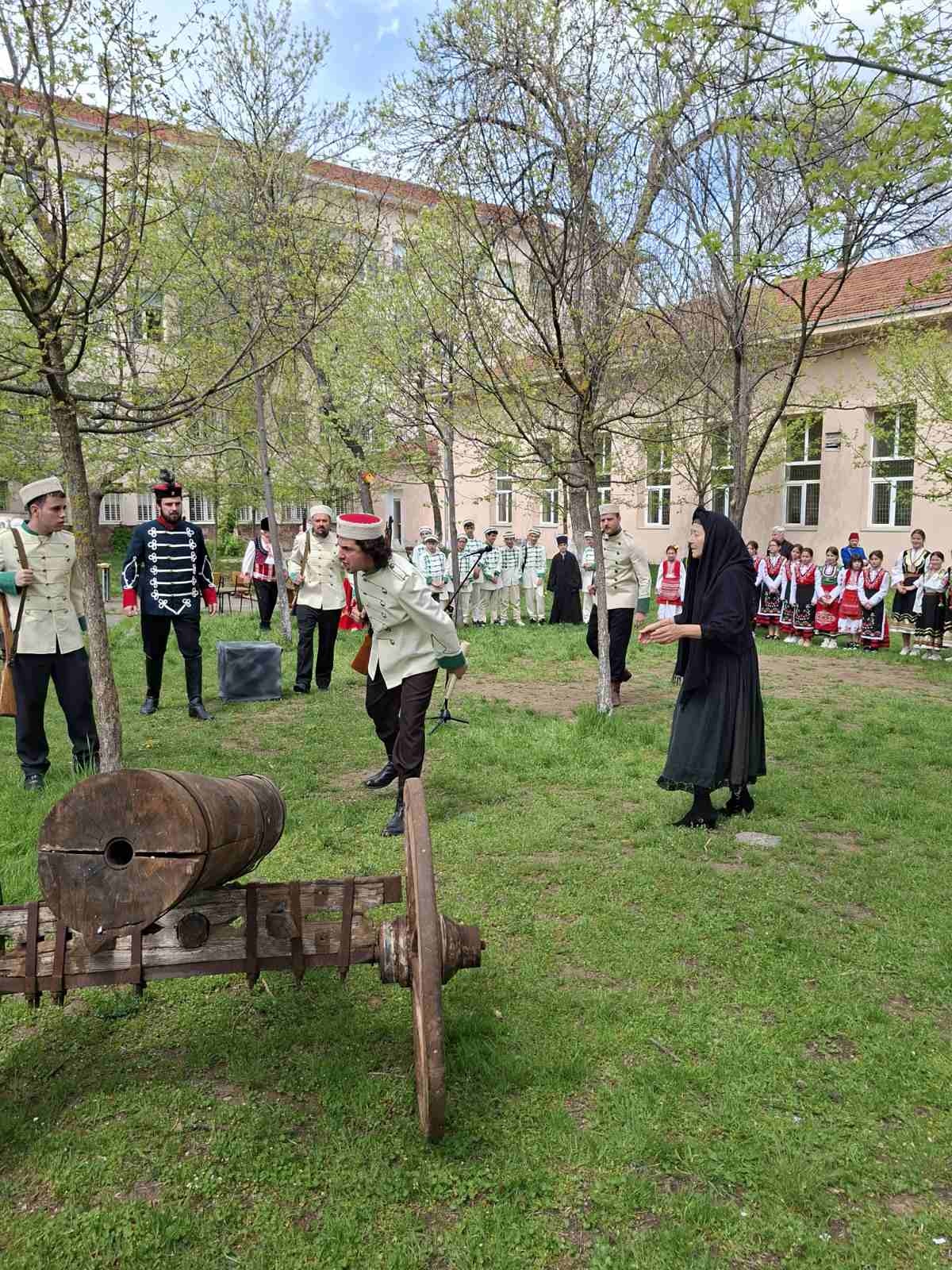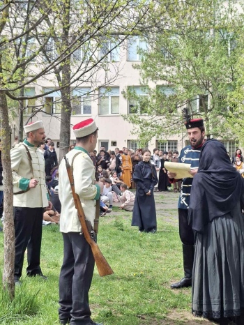 Днес дворът на 5-то ОУ „Иван Вазов“ в София се превърна в сцена на жива история по повод 150 години от избухването на Априлското въстание. По покана на училището, Драматично-куклен театър–Враца представи възстановка с ключови моменти от въстанието, която събра ученици, учители и родители.
