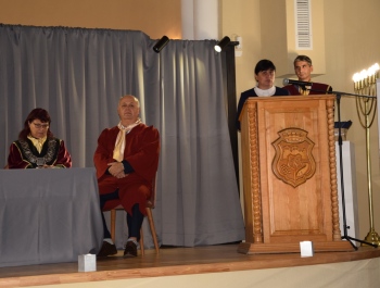 Заместник областният управител поднесе поздравителен адрес от името на областния управител г-жа Ани Арутюнян на административния директор на висшето учебно заведение Момчил Станков. „Вярвам, че с придобитите знания и умения, основани на висококачествено европейско образование, пред Вас ще се откриват широки и достойни възможности за професионална и личностна реализация. Нека опитът и знанията Ви водят към все по-широки цели и успешни начинания“, пише в адреса към абсолвентите и първокурсниците на филиала на РУ „Ангел Кънчев“ във Видин.