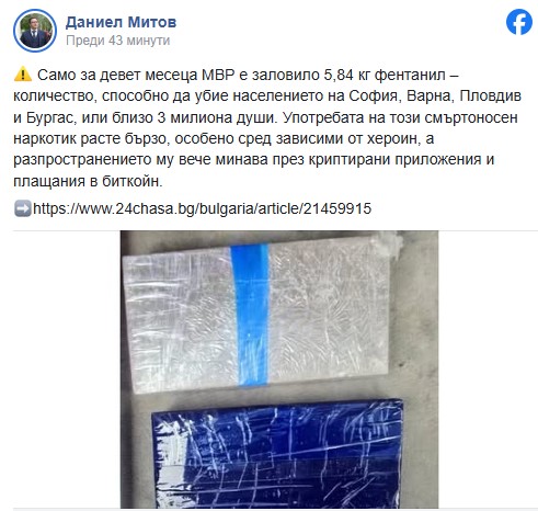 Междувременно вътрешният министър Даниел Митов също сподели информацията в своя профил във Фейсбук.