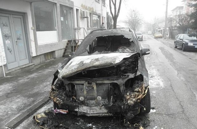 Автомобилът е напълно изгорял. Причината за пожара е в процес на установяване.