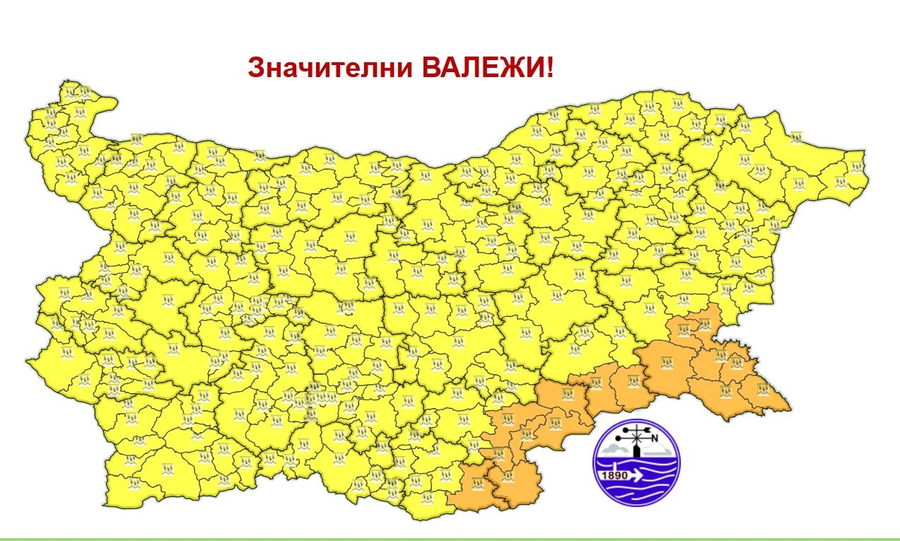 Днес преди обяд валежите ще продължат, но след обяд от северозапад ще спират и облачността ще се разкъсва. Интензивни и значителни по количество ще са в отделни райони от Южна и Източна България. Вятърът ще се ориентира от запад-северозапад; ще е умерен, в Дунавската равнина и Горнотракийската низина временно силен. Максималните температури ще бъдат между 11° и 16°, за София – около 12°.