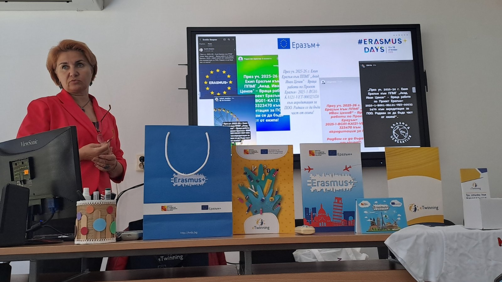 С панелна дискусия „Младите говорят за Еразъм+“, посветена на общоевропейската инициатива Дни Еразъм #ErasmusDays, бяха открити дейностите по тазгодишните проекти на ППМГ „Акад. Иван Ценов“ - Враца, финансирани по действащите акредитации за училищно и професионално образование под егидата на Програма Еразъм+. В Клуб Еразъм бяха приети близо 50 ученици, заявили желанието си с кандидатстване по обявените критерии. Панелната дискусия събра мненията на младежите в три блока: „Какво е Еразъм+ за нас?“, „Аз и Еразъм+“ и „Технологиите и бъдещето“. Анкета провери и техните нагласи и предпочитания за дейности, в които биха желали да се включат по време на мобилностите, а на дърво на посланията учениците записаха свои мисли в допълнение на текста „Аз вярвам, че Еразъм+ е…“ или „Ако можех, бих поканил всички млади хора да…“. На събитието учениците от направление ПОО получиха и първата си индивидуална задача: създаване на рекламна брошура, популяризираща международното ни сътрудничество и осъществените до настоящия момент мобилности.