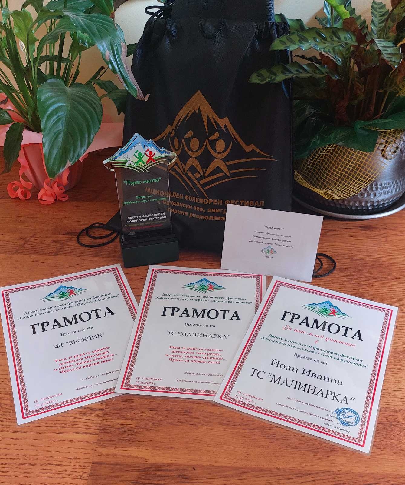 Съставът получи плакет и парична награда, с което заслужено затвърди името на Берковица като град с живи фолклорни традиции и талантливи млади изпълнители.