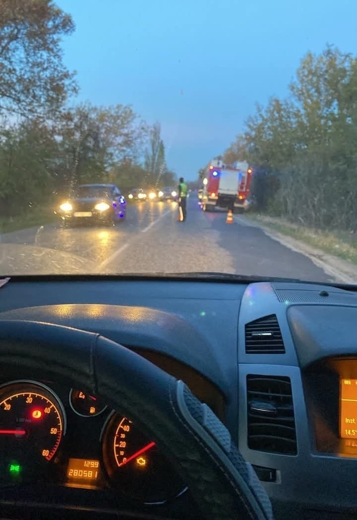 Пътуващи в района на село Баница съобщават в социалните мрежи за катастрофа. Катастрофиралата кола е в канавката до пътя. От снимката се вижда, че на мястото има пожарна.