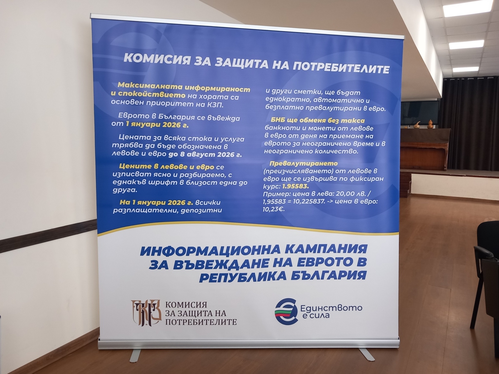 От 1 януари 2026 г. Република България въвежда единната европейска валута. Поради това Комисията за защита на потребителите (КЗП) и Националната агенция за приходите (НАП) организираха информационна кампания за жителите на град Белоградчик. Присъстващите експерти дадоха на живо отговори на всички въпроси, свързани с правата и защитата на гражданите, задълженията на търговците в периодите на двойно обозначаване на цените и използване на двете валути едновременно. Най-вече присъстващите повдигнаха въпроси свързани със свои притеснения за допускане на неволни грешки при плащания и връщане на ресто в лева и евро, както и въпроси свързани със затрудненията, които ще възникнат пред по-възрастното население, което ще се затрудни най-много с настъпилата промяна.
