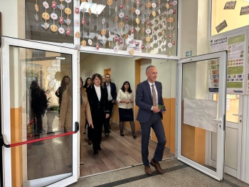 Той поздрави директора на училището Цветелина Късльовска и екипа й за спечеления проект, финансиран с близо 1,5 млн. лв. по Програмата за изграждане и основен ремонт на спортни площадки и физкултурни салони на МОН.