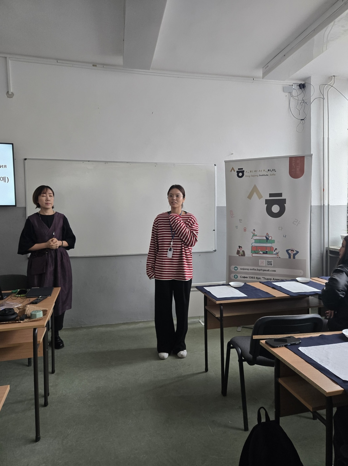В ПГЯЕ "Игор Курчатов" - Козлодуй се провежда курс по корейски език. Преподавател по корейски език е Наред Чо от Hyundai E&C. С любезното съдействие от страна на професионалната гимназия по ядрена енергетика курсът ще бъде удължен с още една година, до 27 ноември 2026 г., тъй като е получил голяма удовлетвореност от записаните ученици. Но този път курсът е отворен и за граждани от Козлодуй, до 20 души. Не е случайно, че точно в тази гимназия се провеждат заниманията по корейски език, туй като там се обучават бъдещите кадри за "АЕЦ Козлодуй" ЕАД. Фирмата Hyundai E&C е избрана да участва в проект за изграждане на новите 7 и 8 блокове на Козлодуй. На 19 и 20 ноември бе организиран уоркшоп за корейската култура от двама преподаватели от Института Седжонг, които проведоха занимания, запознаващи участниците с корейската култура Калиграфия и израбоване на традиционното корейско изкуство минхва.