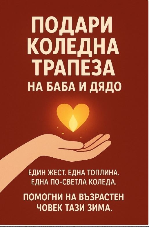Тече инициативата "Подари Коледа за баба и дядо". Тя е традиционна и е организирана от фондация "Прави добро! Бъди добър!" . Тази година е нейното осмо издание, информира Мая Методиева, която е основател на Фондацията: