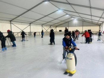 Днес своя час по физическо възпитание на ледената пързалка провеждат учениците от СУ „Васил Кънчов“.