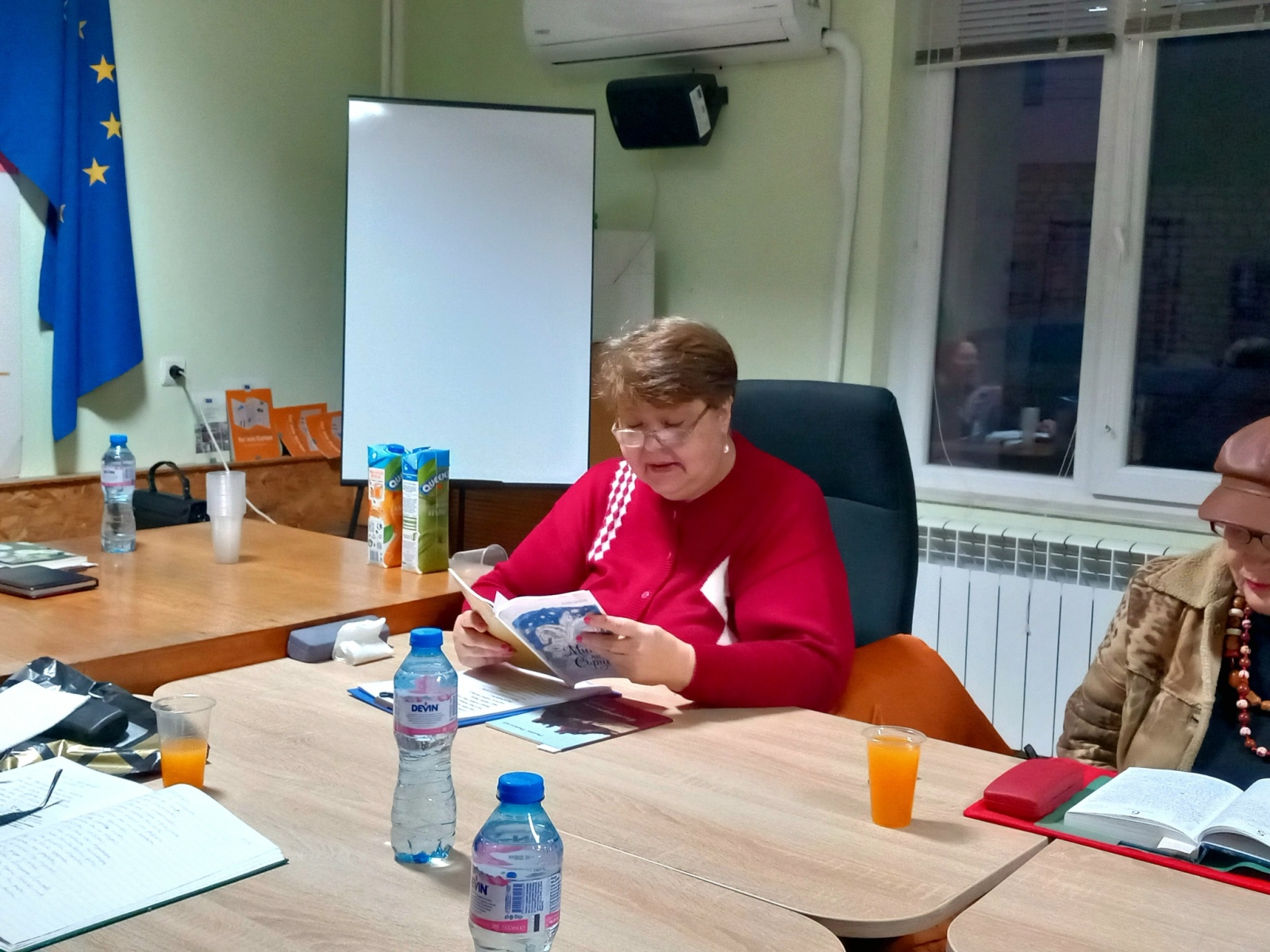 Г-жа Младенова бе първата, която представи стихотворение – това на Валентина Шейтанова наречено „Декември“. След нея и останалите членове на литературния клуб прочетоха авторови и чужди творби, всички подходящи за това време от годината и темите, които в момента вълнуват обществото.