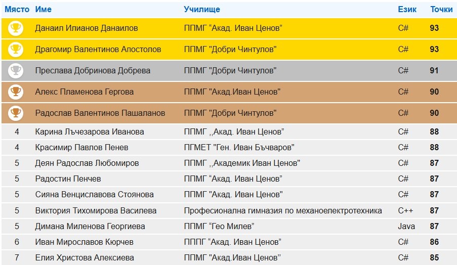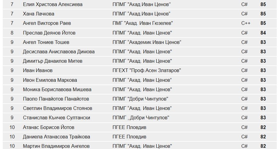 Ръководството на гимназията поздравява изявените програмисти за постигнатите резултати и техния подготвящ учител г-жа Илонка Вутова!