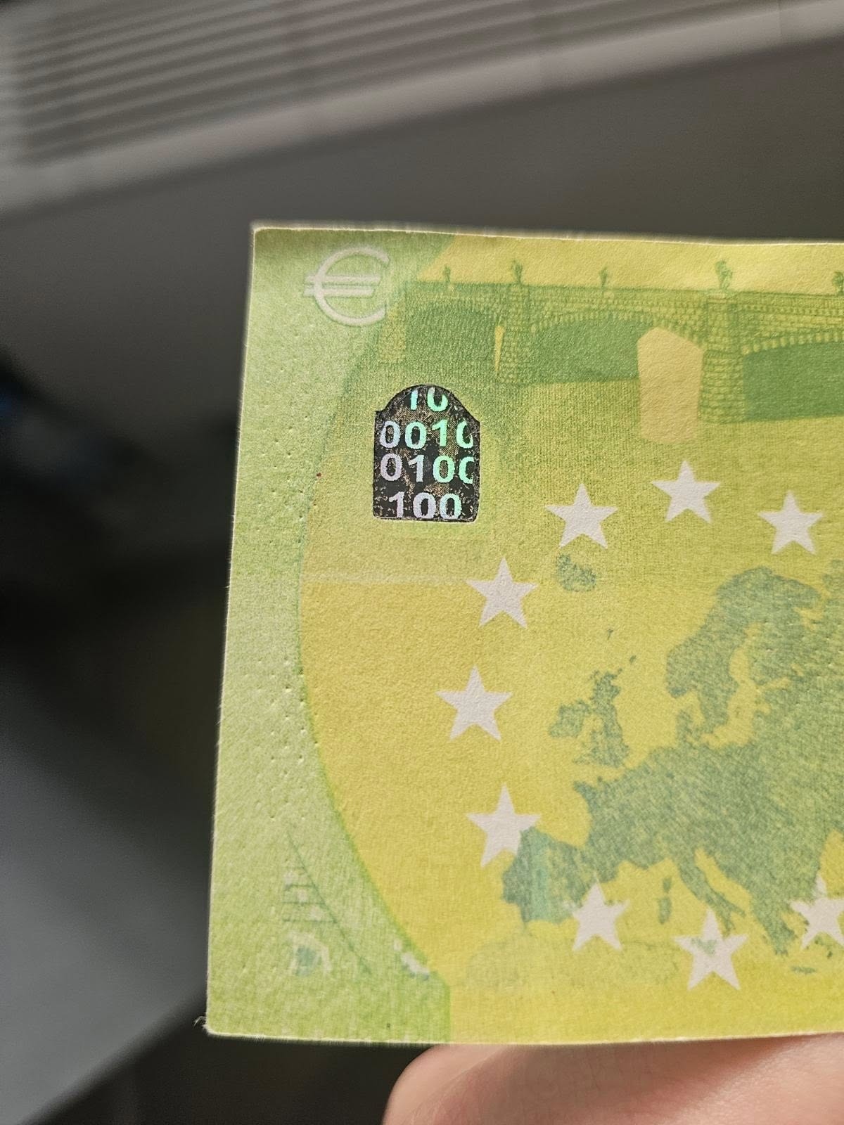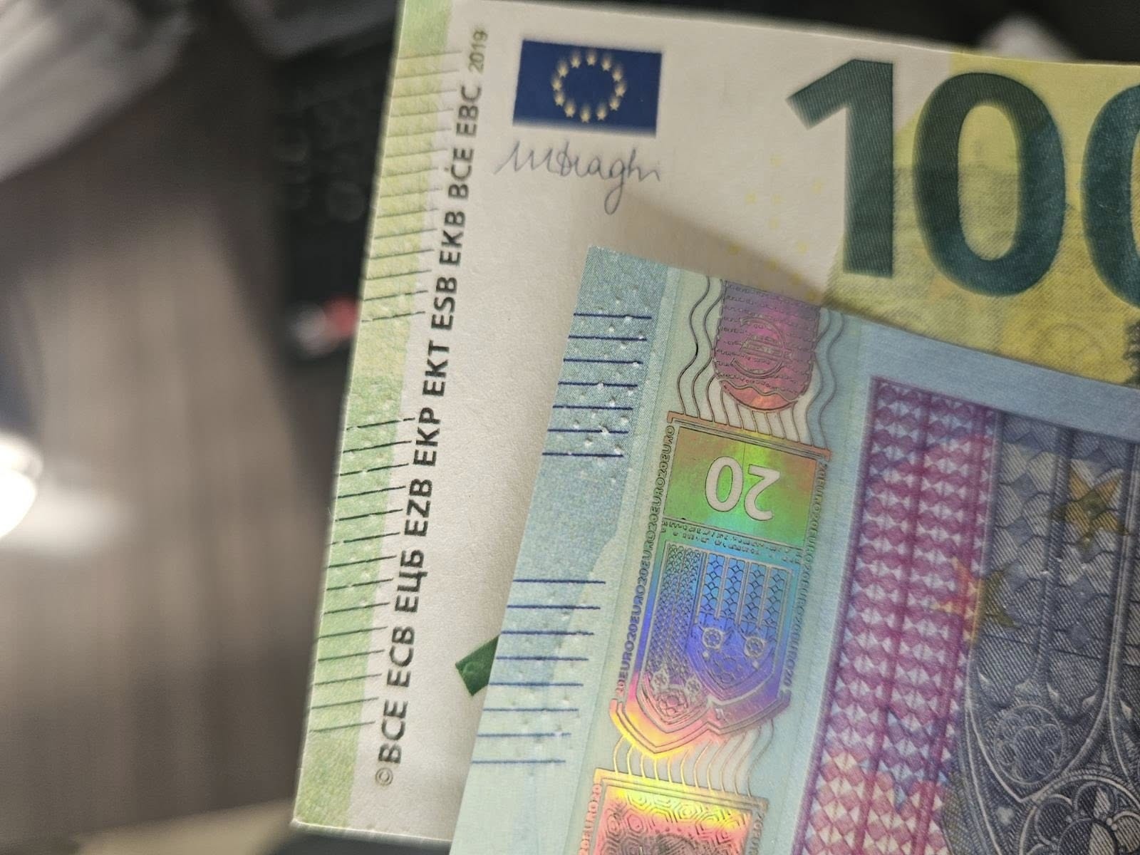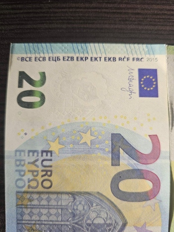 Истинската евробанкнота се усеща, вижда и реагира при накланяне. Ако не – не я приемайте!