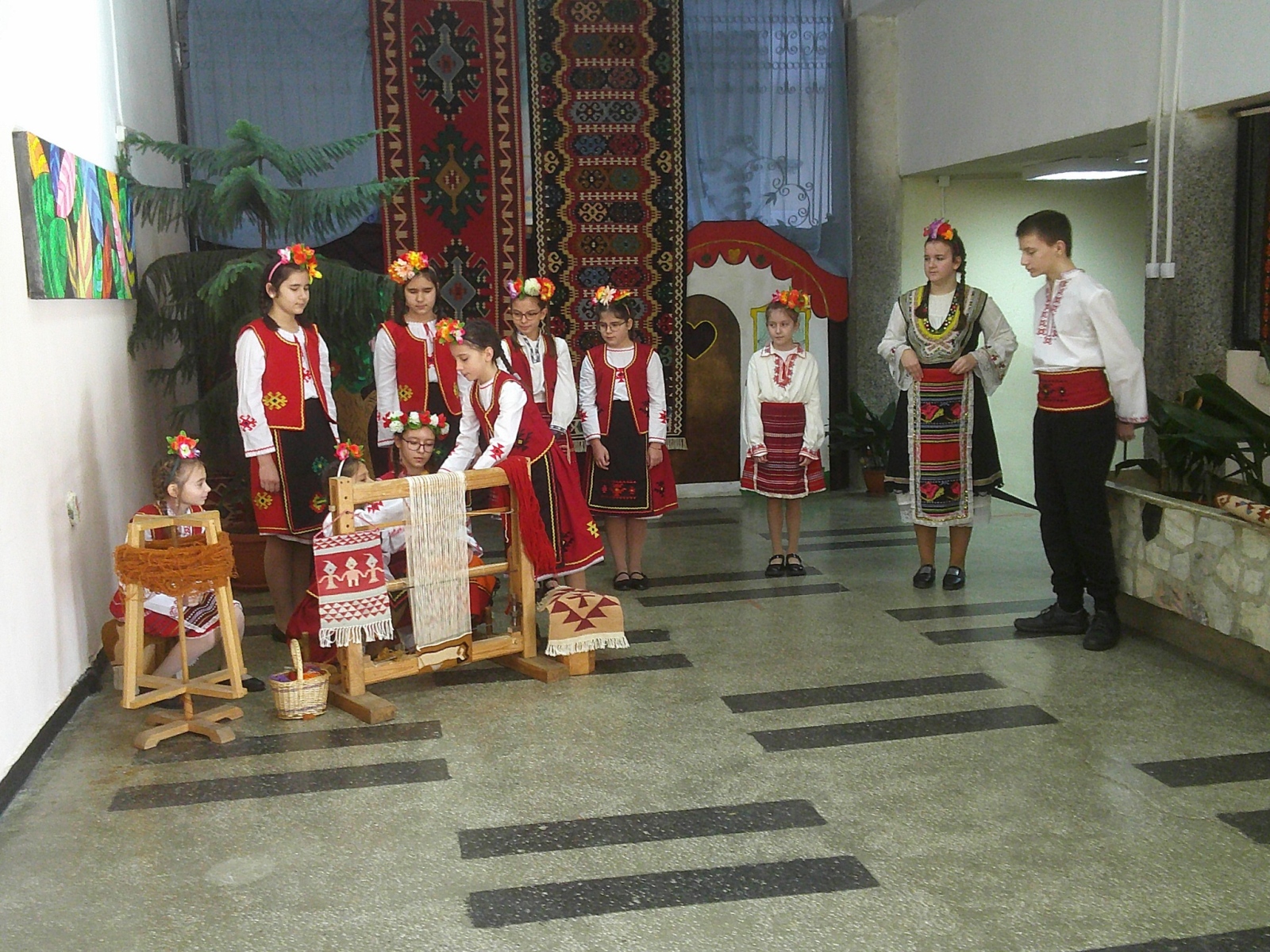 Децата демонстрираха пред гостите последния етап от изтъкаването на чипровския килим" Доткавалник". Демонстрацията завърши с чипровското хоро "Кукуригу-кудкудяк". Директорката г-жа Костадинова се обърна към учениците и гостите с няколко думи, след това заедно с кмета г-н Петков и г-жа Трайкова прерязаха лентата и официално откриха новите кабинети. Отец Йоан ги освети и накрая се проведоха два нагледни урока в присъствието на гостите.