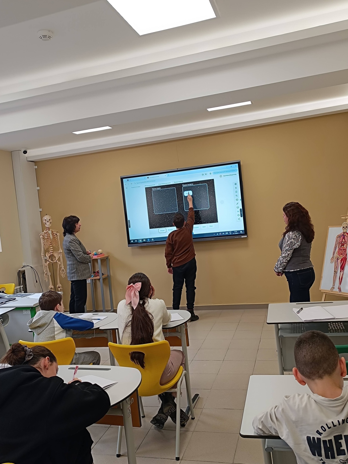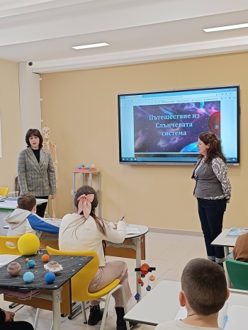 На 21 януари в СУ "Васил Кънчов" се проведе урок в 5. клас на тема Пътешествие из Слънчевата система. Целта на урока е да покаже съвременни методи на преподаване чрез осъществяване на междупредметни връзки по математика и природни науки.