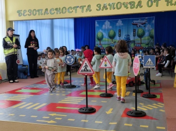 В ДГ „Пролетна дъга“ - Берковица се проведе открита педагогическа практика по безопасност на движението по пътищата на тема „Пешеходец съм аз – пресичам правилно“, реализирана под формата на тренинг и в съответствие с годишния план за квалификационна дейност на детската градина.