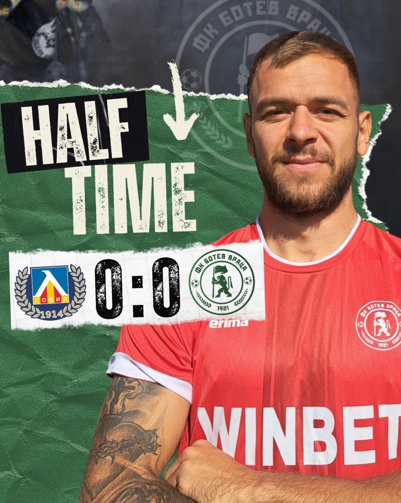 Пет минути преди почивката и Ботев (Враца) показа зъби. Прострелно центриране на Владислав Найденов намери Мартин Петков в наказателното поле. Атакуващият футболист прати топката високо над вратата на Светослав Вуцов.