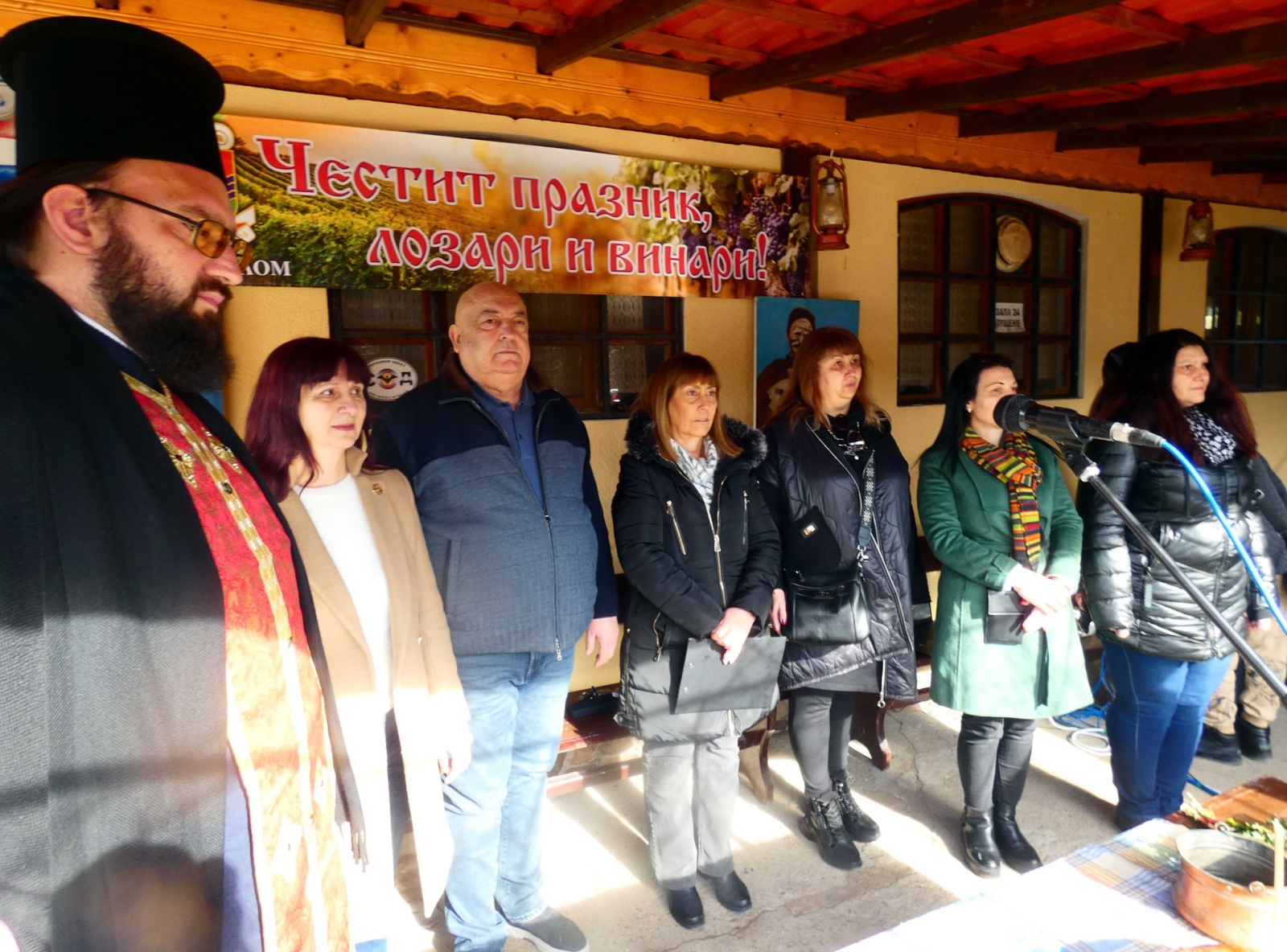 Празничен водосвет за здраве и плодородие отслужи отец Нестор, а кметът поздрави лозарите и гостите на празненството. „Днес, на светлия празник Трифон Зарезан, Деня на лозаря и виното, отдаваме почит към труда, постоянството и любовта, с които съхраняваме една от най-древните и благородни традиции по нашите земи. Ние не само се молим за здрава и плодородна година, но и заявяваме волята си да пазим традициите живи и да ги предаваме на младите. Пожелавам на всички лозари и винопроизводители здрава реколта, берекет и достойно признание за труда ви! Нека домовете ви бъдат пълни с радост, а чашите – с хубаво българско вино! Честит празник! Да бъде плодородна и успешна годината! ”– пожела Цветан Петров, който символично заряза лоза и я поля с вино за здраве и плодородие. Поздравления поднесе и народният представител Надя Петрова. Гости на събитието бяха и председателят на Общинския съвет Пенка Пенкова и заместник-кметовете на Община Лом инж. Хилда Владимирова и Теодора Каменова.