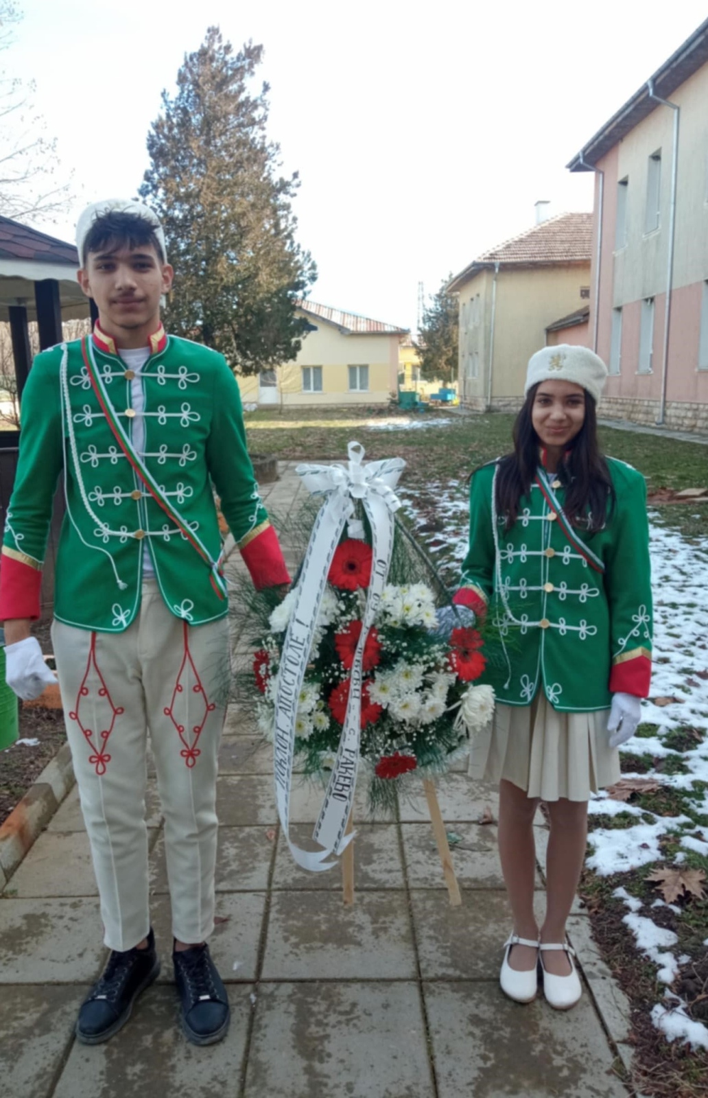 Като израз на признателност и почит бе поднесен венец пред паметника на Васил Левски в двора на училището, а присъстващите сведоха глави в знак на уважение към неговото велико дело.