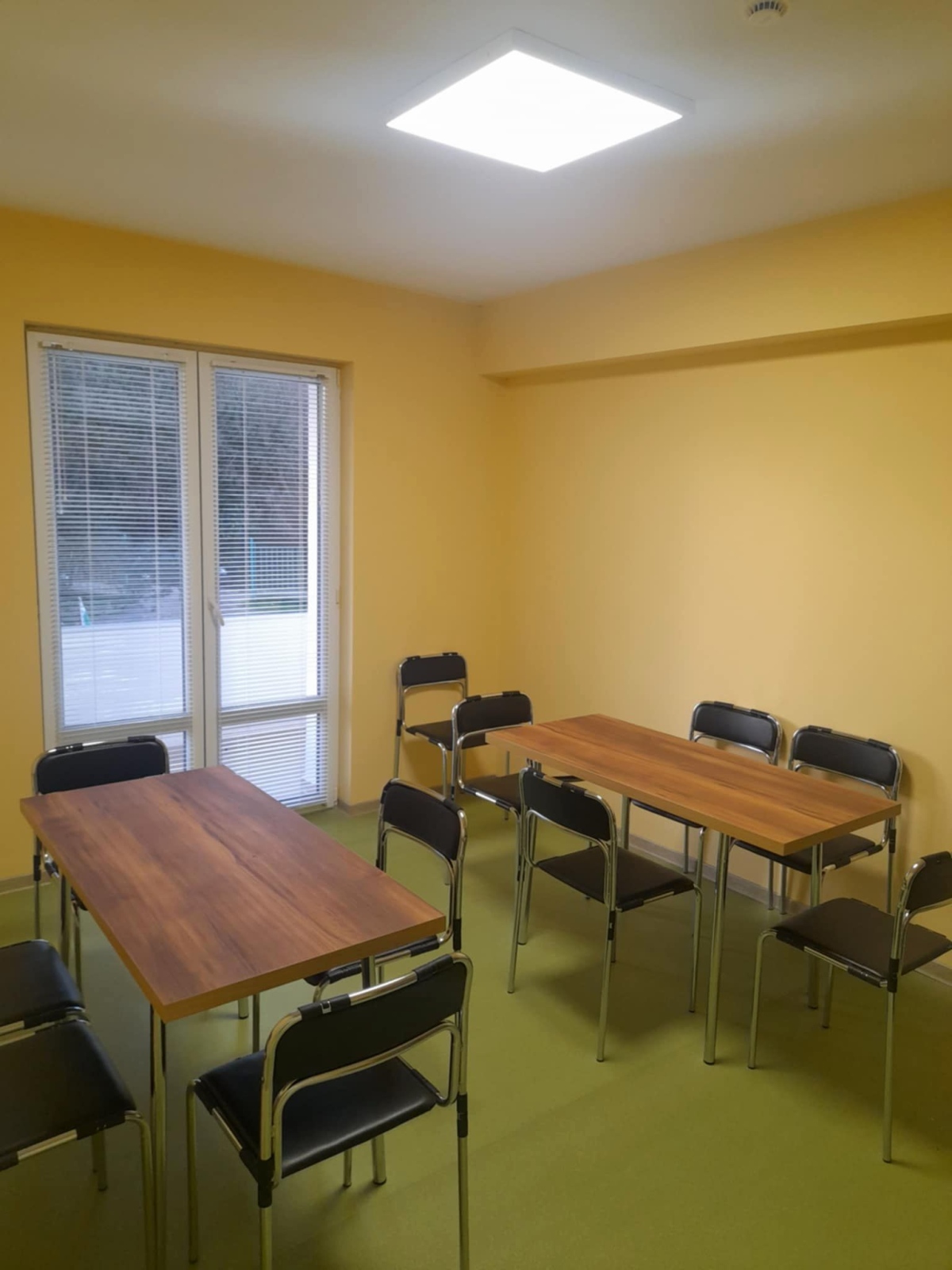 Изцяло ново, модерно оборудване и уютно обзавеждане за стаите, общите помещения и специализираните кабинети;