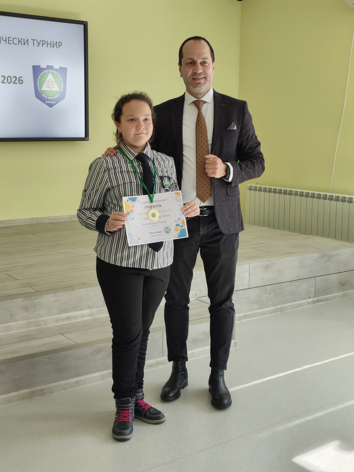 В рамките на Академия по Математика Враца се проведе Зимен математически турнир за ученици от V, VI и VII клас. Възпитаниците на ППМГ „Акад. Иван Ценов“ демонстрираха изключителна подготовка и умения, като спечелиха общо 14 златни, 4 сребърни и 6 бронзови медала. Кметът на Община Враца г-н Калин Каменов лично награди изявените математици, като поздрави всички участници за техните постижения и усилия.
