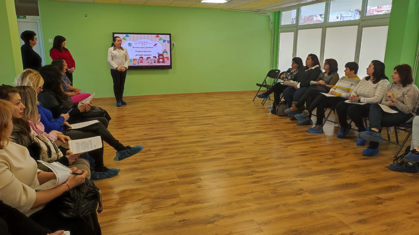 В интерактивния кабинет на ДГ „Единство Творчество Красота“ се проведе открита практика на тема „Играем заедно“ с децата от яслена група „Бонбон“ пред медицински специалисти и педагози от самостоятелните детски ясли и яслените групи към детските градини.