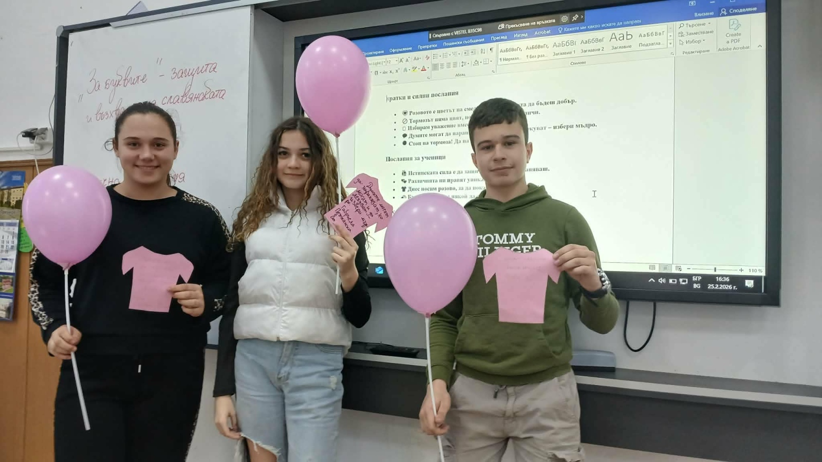С много вдъхновение ученици и г-жа Людмила Антова изработиха розови фланелки с послания за доброта, а в часовете бяха обсъдени теми като емпатия, приятелство и подкрепа.