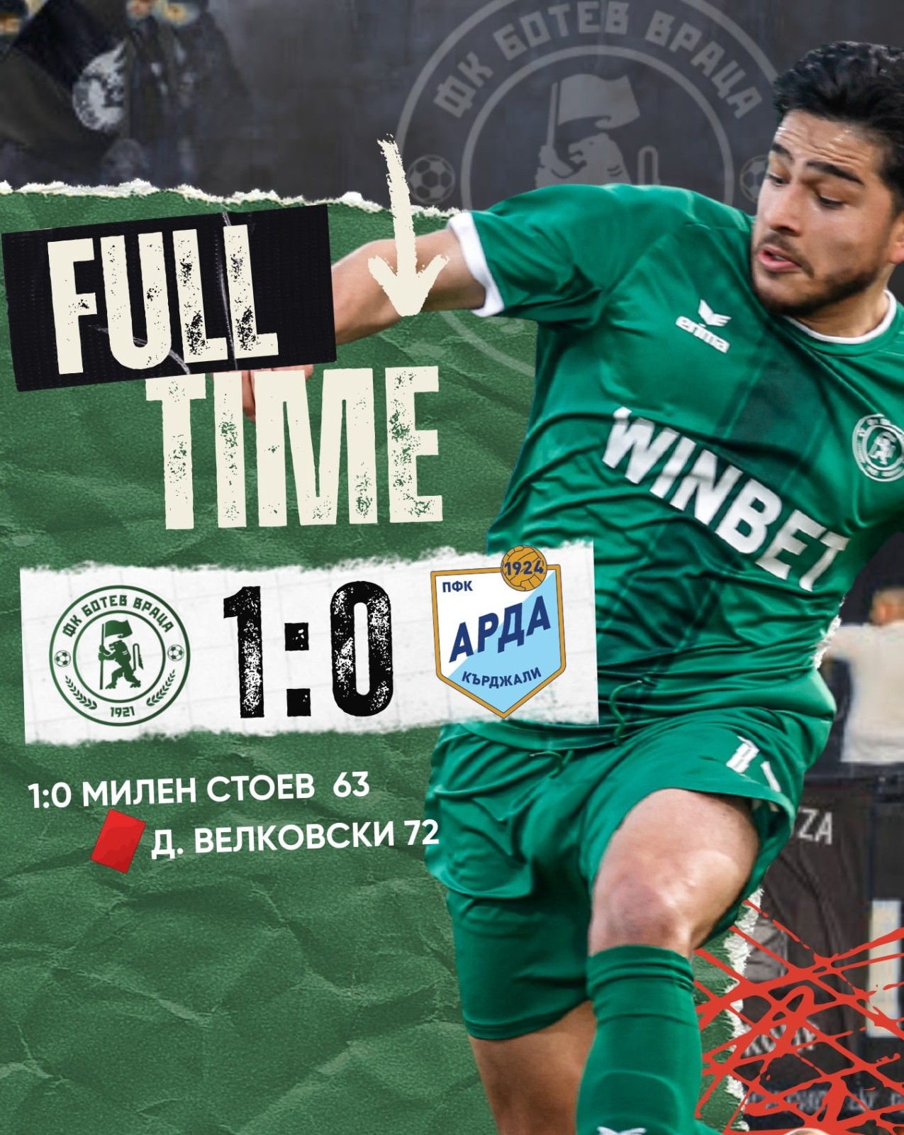 Все пак гол падна, но през втората част. Тогава Милен Стоев наказа бившия си тим и донесе успеха на врачани (63’). В 70-ата минута гостите останаха с човек по-малко след червен картон на Димитър Велковски, а това затрудни още повече ситуацията им и те така и не стигнаха до изравнително попадение.