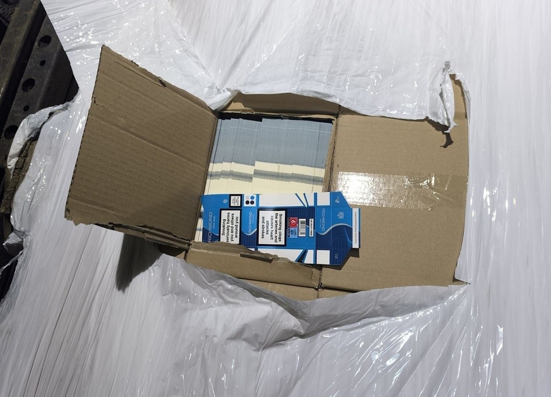 Митнически служители от Териториална дирекция Митница Русе задържаха голямо количество от 1 854 000 заготовки за цигарени кутии и 240 бобини филтърна хартия в товарен автомобил.