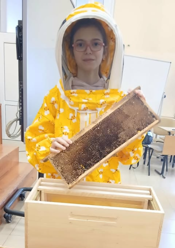 Чрез този STEM урок учениците обобщиха своите познания за пропорциите и, затвърдиха своите умения да решават задачи от пропорции, движение и плътност като изчисляваха обемът на една пчелна килийка и площта на шестоъгълното восъчно капаче, научиха защо формата на пчелните килийки и оматидиите (части от сложните им очи) е шестоъгълна. Пресмятаха колко пчели са необходими за производството на 1,2 кг мед и колко време е необходимо на една пчела да произведе 1 гр. мед. За да изчислят плътността на меда участниците измерваха маса и обем на бурканчета с мед и дадоха обяснение защо медът потъва. Накрая 35 любопитни факти за пчелите, представени в интригуващо видео, „отвориха“ още по-широко вратата към техния свят, а децата имаха възможност да разгледат кошер, да видят изградена пчелна пита, да видят какво представляват восъка и прополиса, както и да се снимат с пчеларско було.