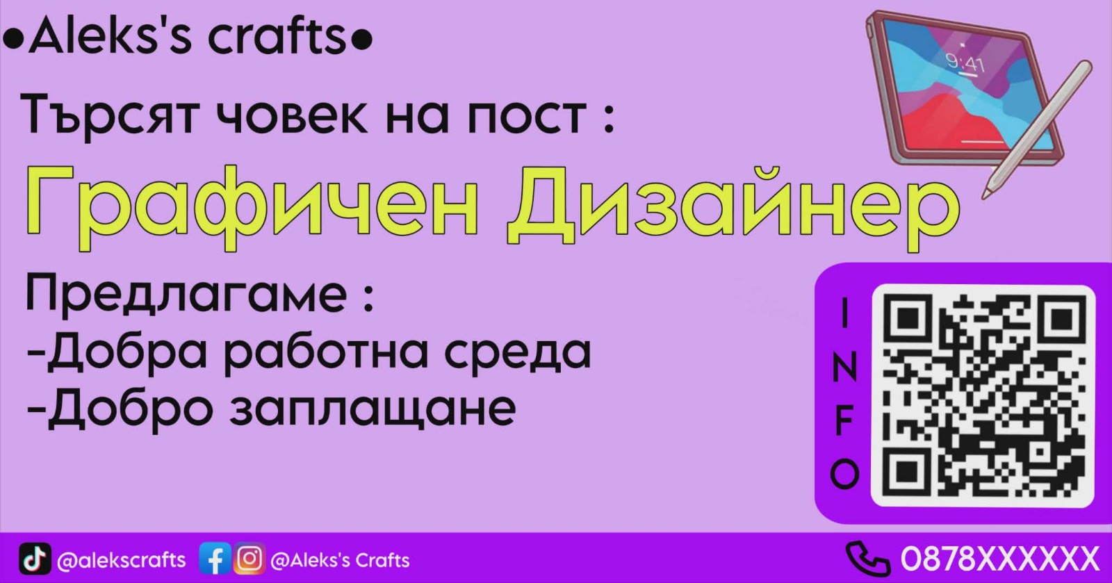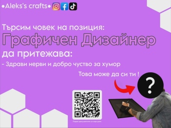 Графичен дизайн – на тема „Обява за свободна позиция Графичен дизайнер- III място Александър Илиев (11А клас)